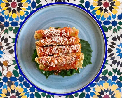 Estos antojitos "enrolladitos" de tortilla de maíz, bañados en salsa de jitomate, se disfrutan en desayunos, comidas o como botana en cantinas.