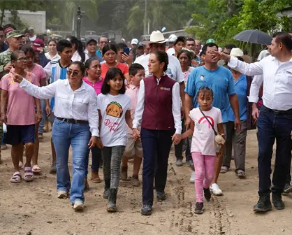 Claudia Sheinbaum y el gobernador de Puebla supervisaron en Pantepec las labores de limpieza y entrega de apoyos tras las intensas lluvias.