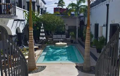 La Posada Hotel & Beach Club ofrece una de las experiencias de day pass más completas de La Paz. Ubicado frente al mar y con una calificación de 4 estrellas en Tripadvisor, combina áreas de descanso, alberca, jacuzzi, spa y un restaurante de especialidades con vista a la bahía.