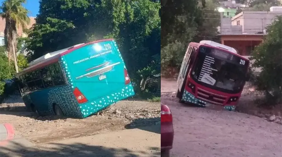 Para evitar el embotellamiento, decidió retroceder por la calle Norte, sin notar los desperfectos en la vía que terminaron causando que el autobús quedara atascado.