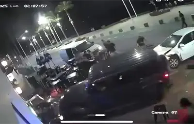 A través de videos que circularon en redes sociales, sobre el Malecón de La Paz, justo en frente del bar conocido como cervecería La México, se observa cómo el conductor de Jeep protagonizó un aparatoso accidente en el cual, chocó con un automóvil y tumbó a sillas, mesas y clientes del bar.