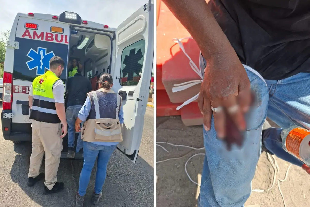 Al medio día de este viernes, se reportó un incidente en la colonia Pueblo Nuevo en La Paz, donde se informaba que un joven que trabajaba en una obra, sufrió un accidente con una herramienta de trabajo.