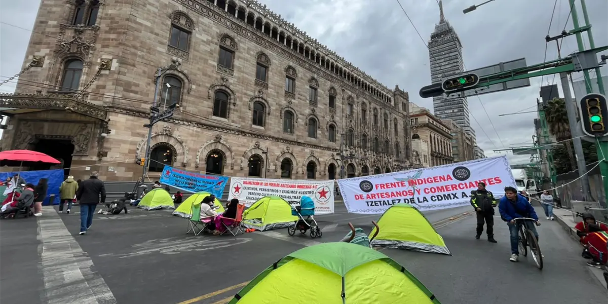 Ante la falta de diálogo, decidieron instalar el campamento en el Eje Central Lázaro Cárdenas, donde permanecen con lonas, mantas y algunas de las piezas artesanales que buscan ofrecer al público durante las próximas festividades.