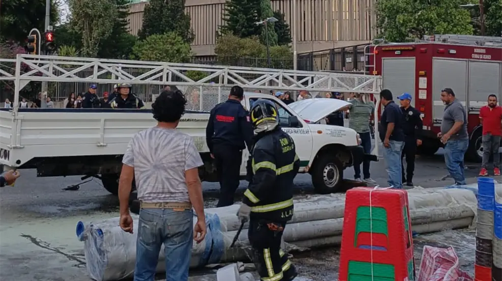 Minutos después del reporte, arribaron elementos de Protección Civil y del Cuerpo de Bomberos de la Ciudad de México, quienes realizaron maniobras con equipo especializado para colocar nuevamente la camioneta sobre su eje.