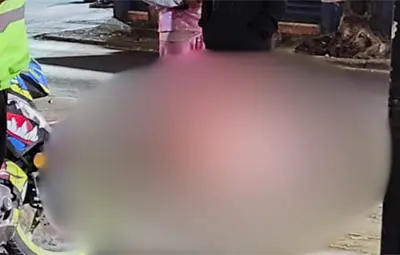 Tras el impacto, el hombre quedó tendido sobre el pavimento, evidentemente adolorido y con lesiones severas en la cadera.