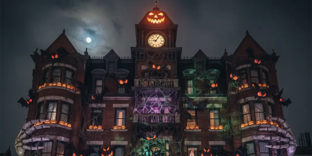 Edificio caracterizado por la festividad Halloween | Foto: Gemini IA