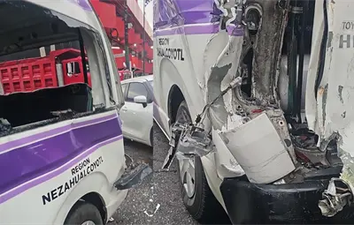 De acuerdo con los primeros reportes, el conductor del vehículo de carga no pudo detener su marcha a tiempo, lo que provocó que se estrellara contra la unidad de transporte público, perteneciente a la región Nezahualcóyotl, que en ese momento transportaba a varios pasajeros.