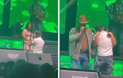 En medio de la presentación musical, el hombre sorprendió a su acompañante al arrodillarse y ofrecerle un anillo de compromiso. Los asistentes grabaron el momento con sus teléfonos y los videos se hicieron virales en cuestión de horas.