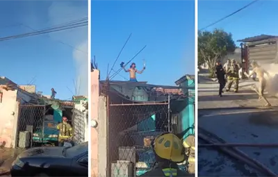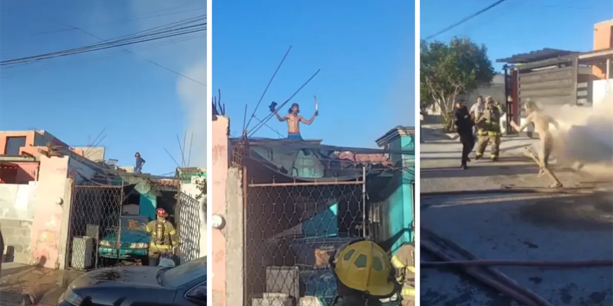 Al llegar, los elementos encontraron fuego activo dentro de la vivienda y, además, observaron que el presunto responsable se encontraba en la azotea armado con un machete, impidiendo el ingreso de los rescatistas.
