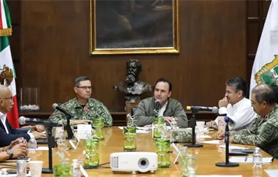 Durante la reunión, que contó con la presencia del General Fernando Colchado Gómez, comandante de la XI Región Militar, mandos militares, así como titulares de dependencias estatales y federales, Jiménez Salinas agradeció y felicitó a quienes integran esta mesa de trabajo, exhortándolos a mantener la vigilancia y fortalecer el blindaje del estado.