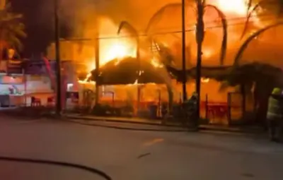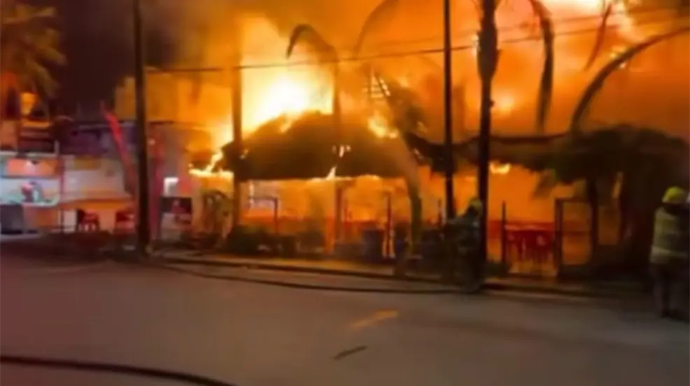 El restaurante Asador el Ángel fue reducido a cenizas luego que un petardo lanzado presuntamente por aficionados rayados cayó en el techo del establecimiento.