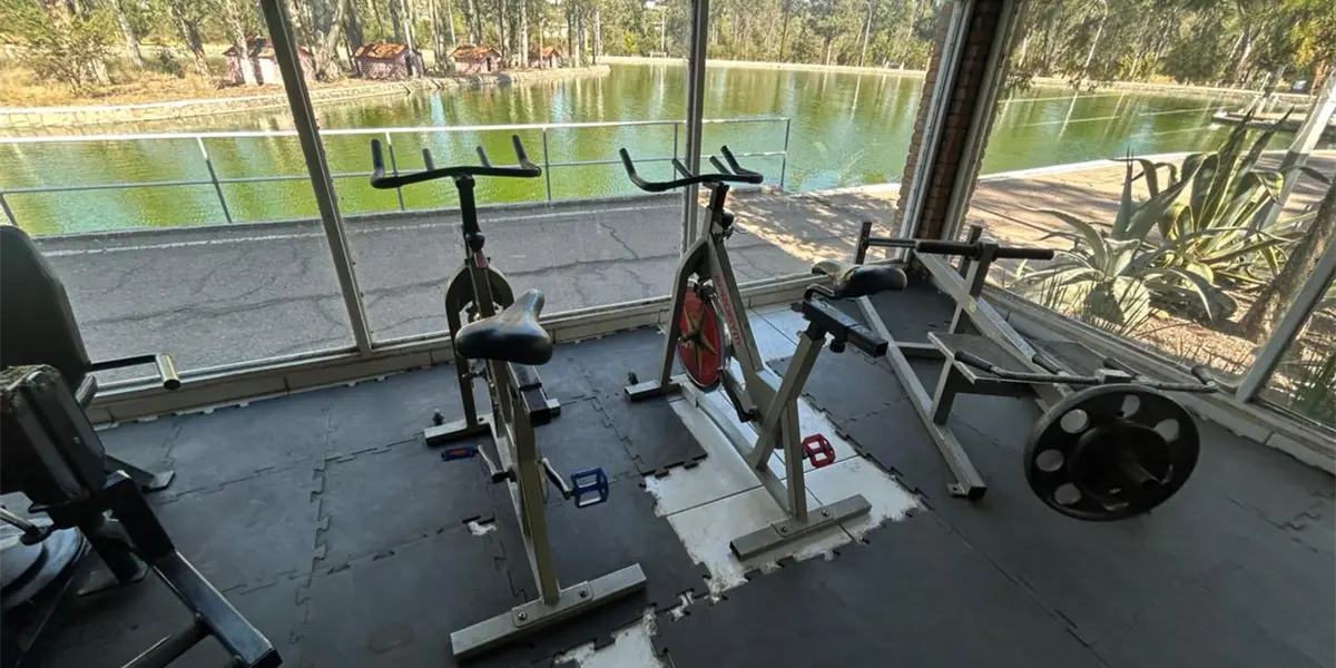 Este gimnasio tiene un distintivo, y es que al estar haciendo ejercicio se tiene una vista hacia el lago del parque Sahuatoba, en el que comúnmente se pasean los patos.