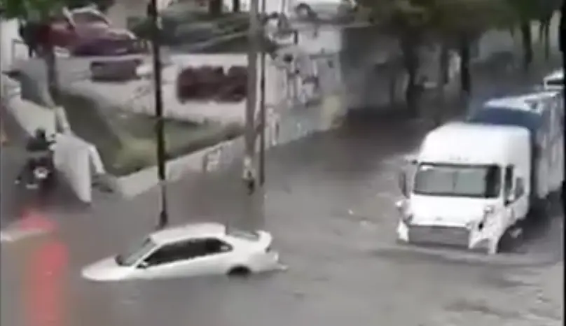 Intensas lluvias dejan autos inundados en Coacalco, Edomex