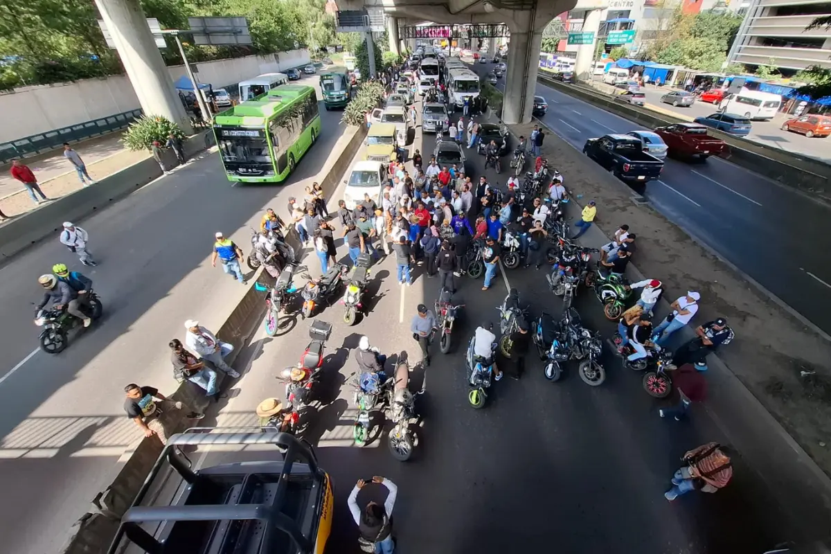 Por problemas de trámites de verificación de matrículas, transportistas de la Ciudad de México, realizaron una protesta en avenida universidad en la alcaldía Coyoacán.