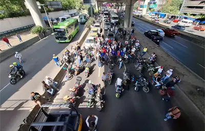 A su llegada a los límites con la capital del país, elementos de la Subsecretaría de Control de Tránsito de la Ciudad de México detuvieron el avance de la caravana, lo que ocasionó congestionamiento vehicular en los carriles centrales de Periférico Norte.