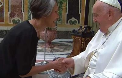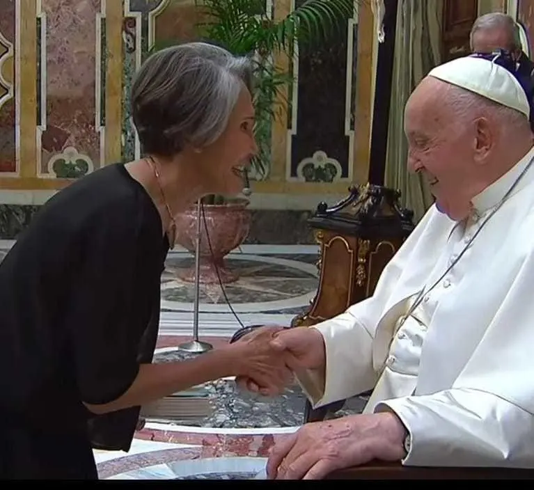 A risa y risa el Papa, y Florinda Meza una de las invitadas, mantienen encuentro
