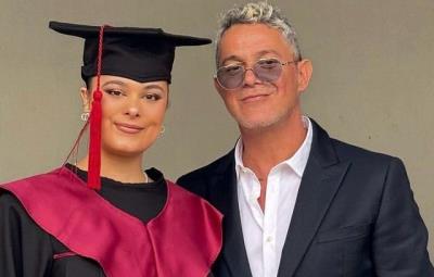 Manuela Sanz, se tituló en diseño de moda, y a pesar de que no pensaba que su padre asistiera a su graduación, esto no fue así, pues el intérprete, se presentó en la ceremonia con gran ramo de rosas y en complicidad con su mamá hicieron esta visita posible.