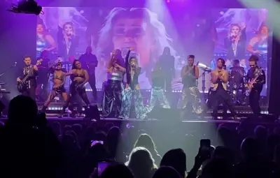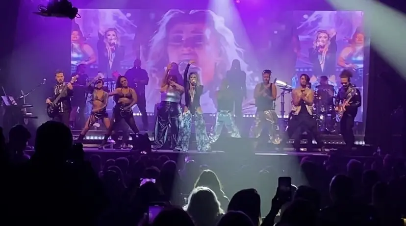 Acompañada de siete músicos, dos coristas y seis bailarines la ex Kabah prosiguió su show con temas como "Arrepentida y sola", "Frente a frente" y "Las que se ponen bien la falda".