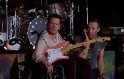 Emotiva aparición del actor Michael J. Fox junto a Coldplay, durante el show de la banda británica, Chris Martín permitió que el actor tocara la guitarra, volviendo el momento emotivo.