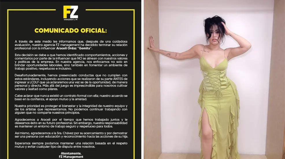 CIUDAD DE MÉXICO, México.- La controversial participante de La Casa de Los Famosos (LCDLF), Aracely Ordaz, mejor conocida como Gomita, ha generado mucha confusión entre los usuarios de redes sociales luego de que se viralizara un comunicado en el que habría sido desvinculada de su agencia de management, mismo que ya no está disponible, haciendo que surja la pregunta, ¿la despidieron?