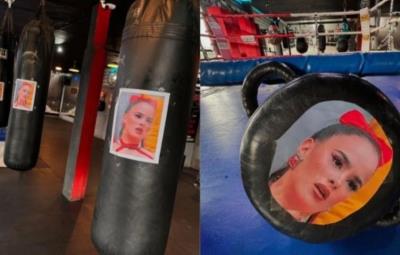 Critican a gimnasio de San Nicolás por colocar imágenes de la actriz en los costales de box, esto al parece en apoyo a Adrián Marcelo