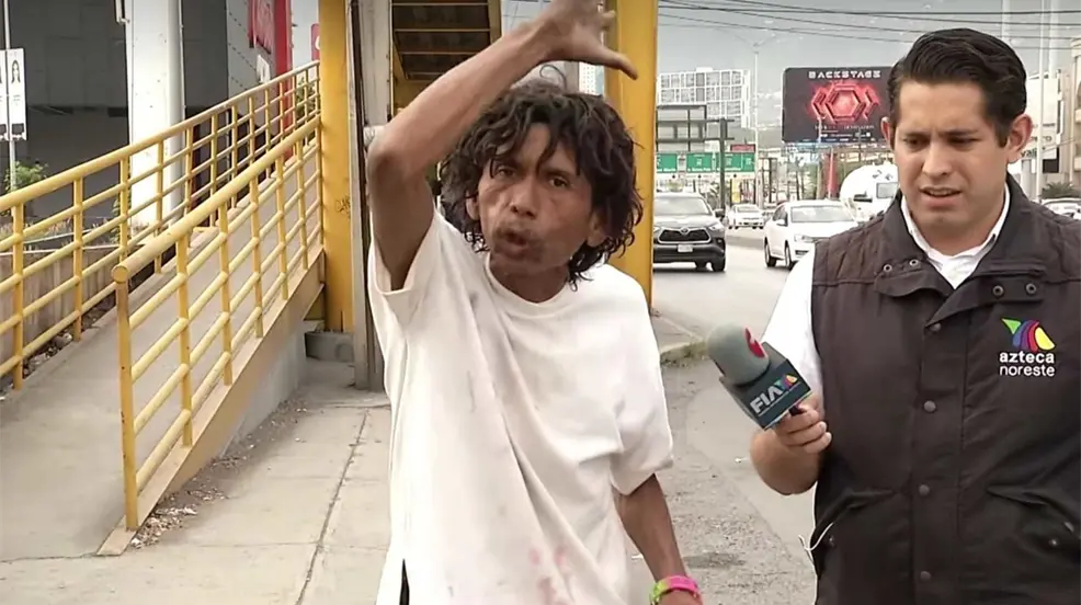 El reportero de Azteca Noreste se encontraba grabando un enlace cuando de pronto fue interrumpido por un hombre de la calle