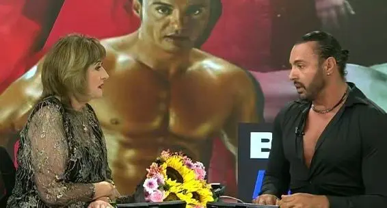 El ex luchador, estuvo como invitado en el estudio de su noticiero, para hablar de su próxima presentación en la Triplemanía 32, el cual tendrá cede en el estadio Mobil Súper el 27 de abril, Latin lover primero la sorprendió con un ramo de flores, mientras la periodista le realizaba la entrevista.