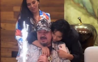 El intérprete compartió unos videos a través de su Instagram donde se le ve festejando, lo que llamó más la atención fue que su yerno Christian Nodal si asistió a pesar de los rumores que dicen que existía un distanciamiento, pero tal parece que no fue así pues le dio un abrazo de felicitación.