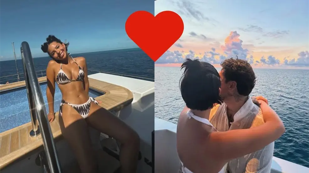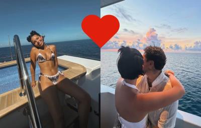 El cantante Cristian Nodal presumió en sus redes sociales a su esposa Ángela Aguilar en un yate, luciendo tremendo bikinazo de dos piezas y embarazada no se ve.