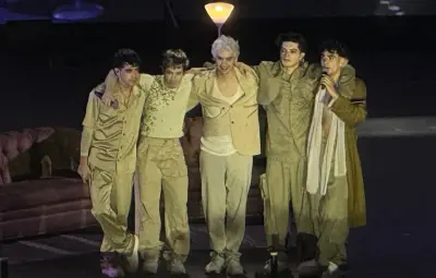 Acompañados por siete músicos en el escenario, los chicos, que a lo largo del concierto lucieron varios cambios de vestuario, no dejaron provocar gritos con sus provocativos pasos de baile.