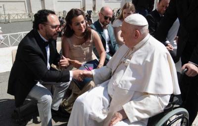 ROMA, Italia.- Tras su participación en la Marché du Film dentro del Festival Cannes, los cineastas regiomontanos, Juan Carlos Salas y Martha Lilia López, viajaron al Vaticano, donde tuvieron una audiencia con el Papa Francisco.