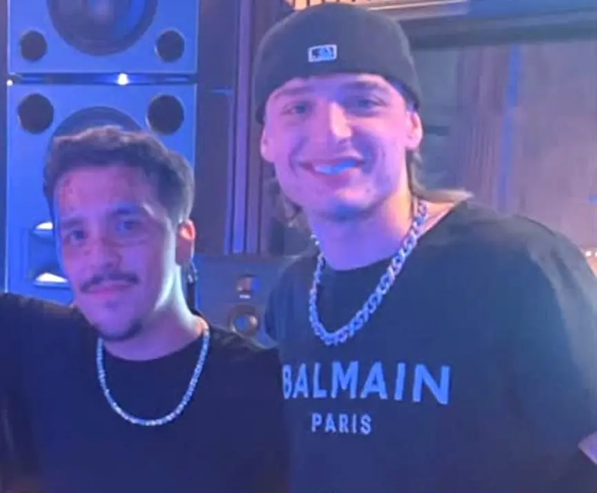 Peso Pluma y Christian Nodal compartieron una fotografía en sus redes sociales en un estudio de grabación donde ambos preparan colaboración musical.