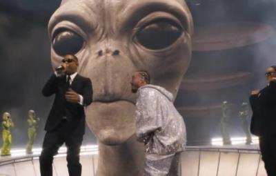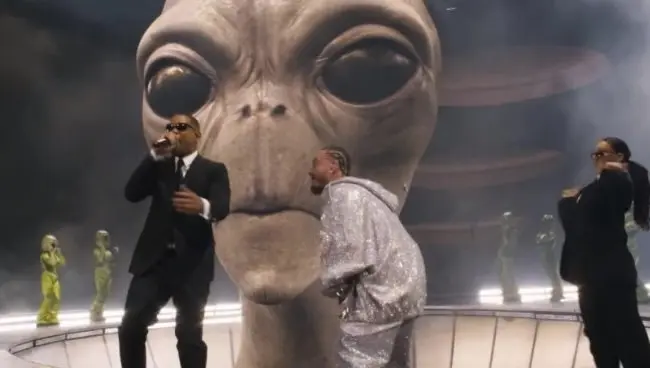 Smith, apareció con el vestuario original de este filme, portando un traje negro, corbata negra y gafas del mismo color, además de tener uno bailarines vestidos de extraterrestres y una imagen en grande de una cabeza de alíen.