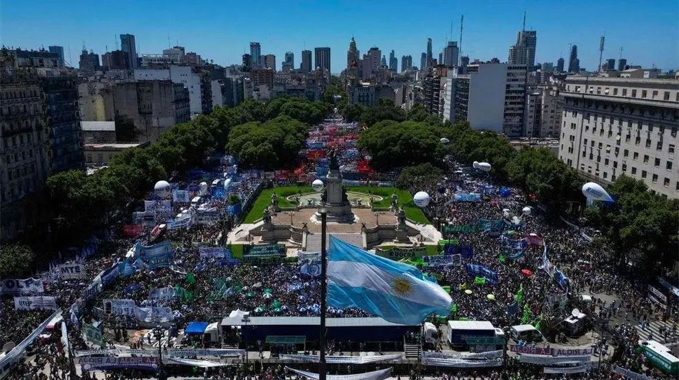Convocados por la Confederación General del Trabajo (CGT), la central de obreros más importante del país, las calles se llenaron de manifestantes que reclaman la dura devaluación del peso argentino, lo que disparó en más de 200% la inflación en Argentina.