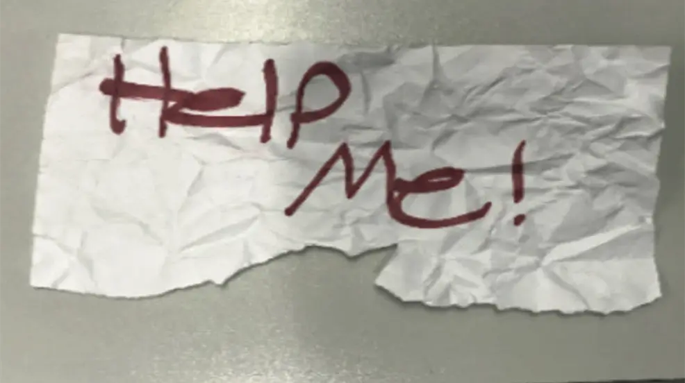 A través de su investigación, los agentes supieron que los buenos samaritanos se encontraban en un estacionamiento cuando vieron a la víctima en un vehículo estacionado sosteniendo un trozo de papel con la palabra “ayúdame” escrita en él. Reconocieron la nota y llamaron inmediatamente al 911