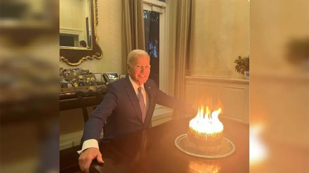 El presidente de Estados Unidos, Joe Biden celebró su cumpleaños el lunes con una foto de un pastel lleno de 81 velas, lo que desató una nueva tormenta de bromas sobre su avanzada edad.