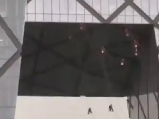 BEIJING, China.- Un grupo de por lo menos 14 trabajadores quedó colgando a varios metros de altura en un edificio en el centro de Beijing, China.