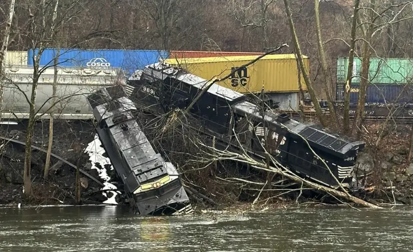 Se han desplegado boyas de contención. Barndt dijo que los servicios de emergencia ayudaron a tres empleados de Norfolk Southern a subir por las empinadas orillas del río, pero nadie resultó herido en el accidente.