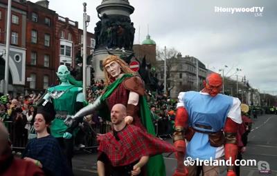 En la celebración de este 17 de marzo 2024, se festejó el día de San Patricio en Irlanda con un desfiles, banderas, bailes, tambores y trompetas. Además, gimnastas irlandesas hicieron performance vestidas de verde y hubo muchas personas tocando la gaita, desfilando. Igualmente, acudieron muchos irlandeses, desde niños hasta adultos, muchos vestidos con algún distintivo verde o con la cara pintada con la bandera del país. En el evento, desfilaron hombres disfrazados de San Patricio, tomándose fotos y videos.