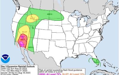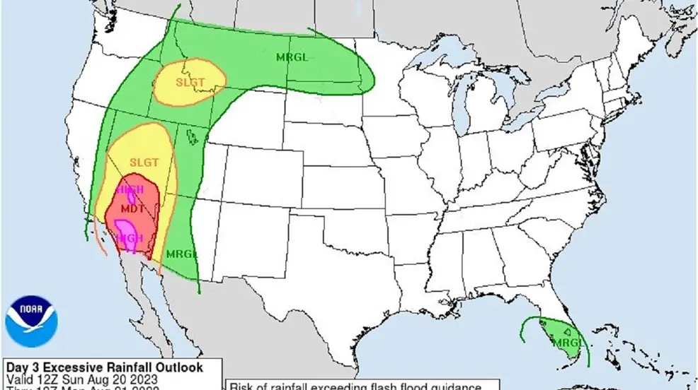 Existe la posibilidad de impactos e inundaciones peligrosas debido a las fuertes lluvias en partes del suroeste de los Estados Unidos este fin de semana.