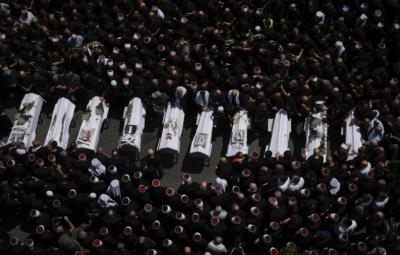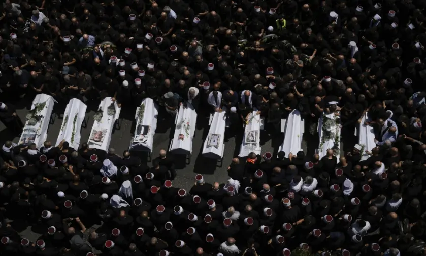 En la ciudad drusa, miles de personas se congregaron para acompañar los féretros de los menores fallecidos, de entre 10 y 16 años.