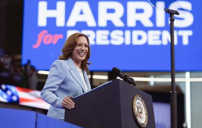 Harris desafía a Trump a debatir cara a cara en mitin en Georgia