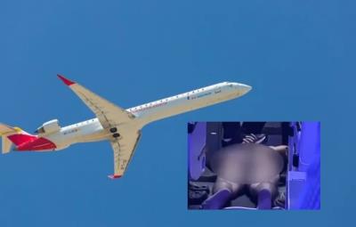 Hombre corre desnudo en pleno vuelo y golpea a una azafata