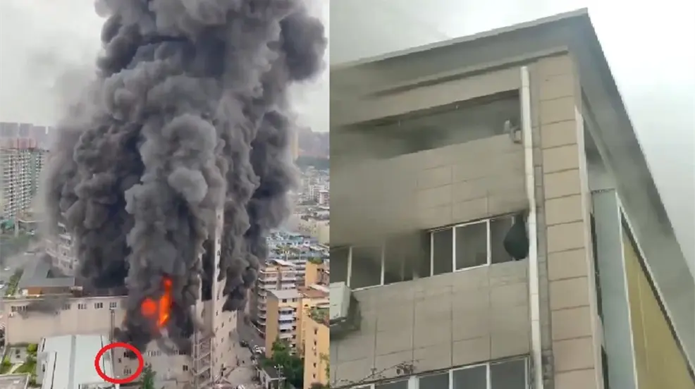 Hasta el momento se desconoce qué fue lo que originó el incendio en el centro comercial de Zigong, que está ubicada a mil 600 kilómetros de Pekín, China. En imágenes y videos compartidos en redes sociales se puede observar cómo las llamas se extienden en el inmueble generando una enorme columna de humo negro que es visible a kilómetros de distancia; además, ante la magnitud del incendio y humo en el lugar una persona se lanzó de una ventana.