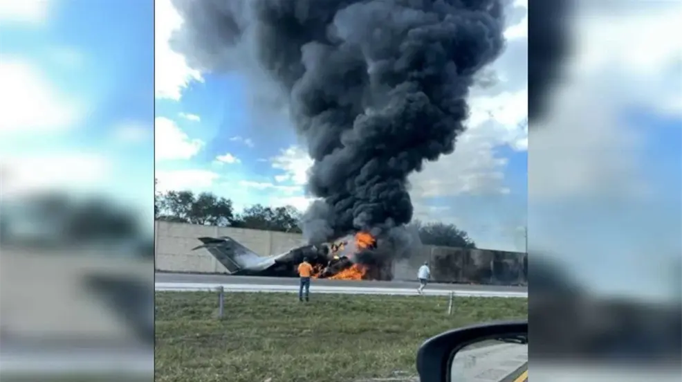 Jet privado se estrella en autopista de Florida, hay dos muertos