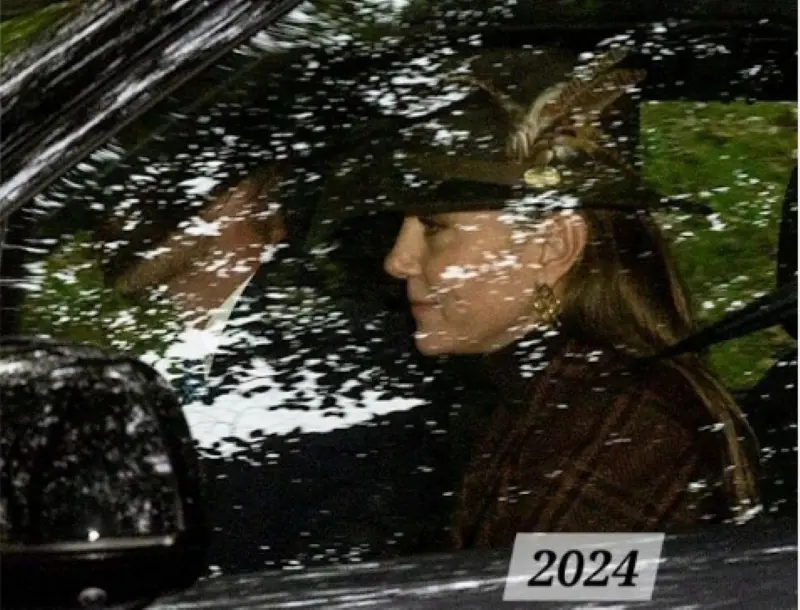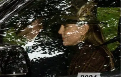 La princesa de Gales fue captada conduciendo su propio coche, acompañada por su esposo Guillermo de Inglaterra, luciendo un elegante sombrero de la marca Hicks & Brown y pendientes de oro de la firma Cassandra Goard.