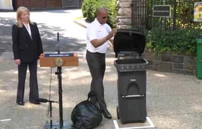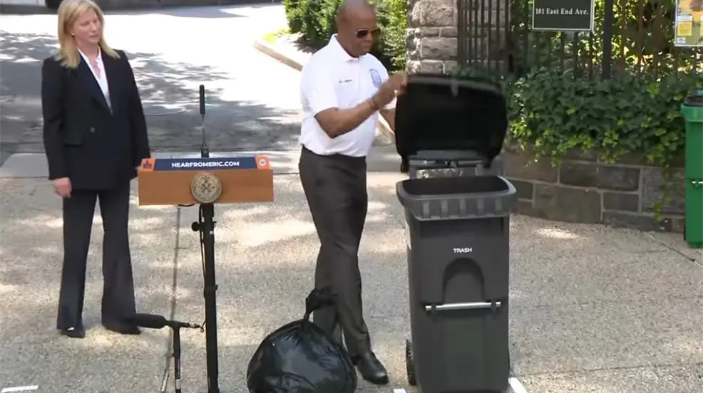El alcalde Eric Adams presentó este programa con bombo y platillo en una ceremonia simbólica donde sacó su propia basura.