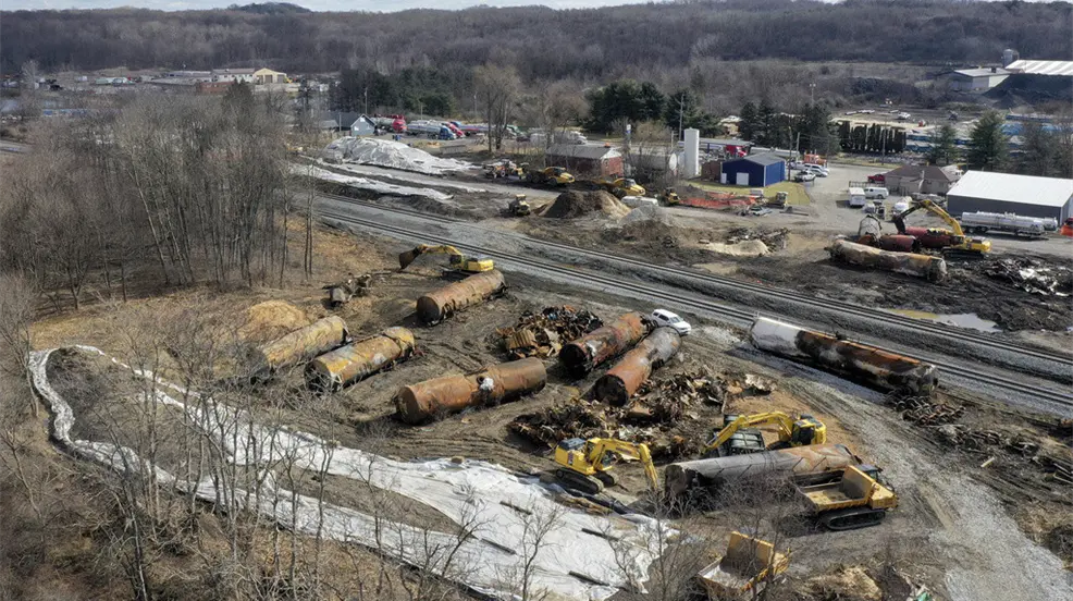 El descarrilamiento del 3 de febrero no causó heridos, pero la mitad de los 5.000 habitantes de East Palestine debieron evacuar el pueblo durante días, cuando los socorristas quemaron intencionalmente sustancias químicas tóxicas en algunos vagones descarrilados para prevenir una explosión descontrolada, lo que causó temores por la salud a algunos pobladores. Funcionarios del gobierno dicen que los tests en el último mes no han encontrado niveles peligrosos de sustancias químicas en el aire o el agua.