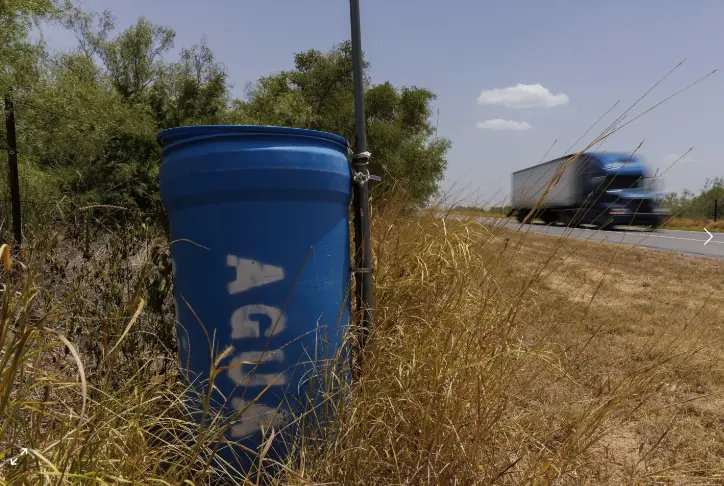 Desaparición misteriosa de toneles de agua para migrantes en medio de una ola de calor en el sur de Estados Unidos.