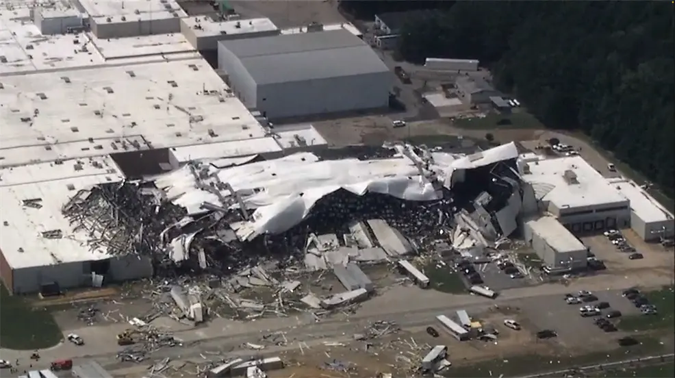Un tornado de categoría EF3 destrozo una importante planta farmacéutica de Pfizer ubicada en Carolina del Norte.